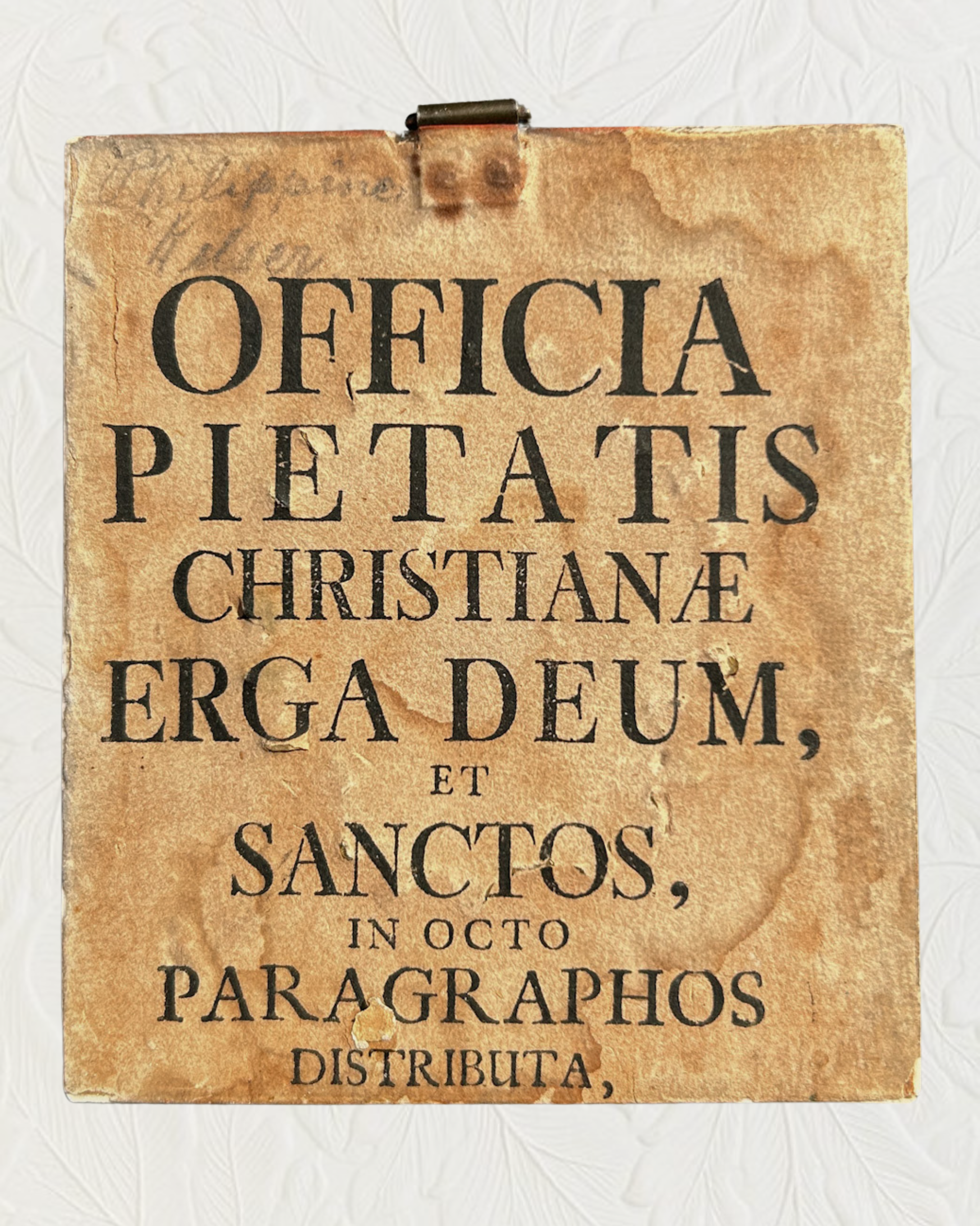 The portrait is housed under glass within a hand-inlaid ivory frame, decorated with delicate linear etching along the border and radial marquetry around the oval mount. The reverse is covered with an early Latin devotional print, a period feature often found in miniatures. Signed on middle rightmost corner.