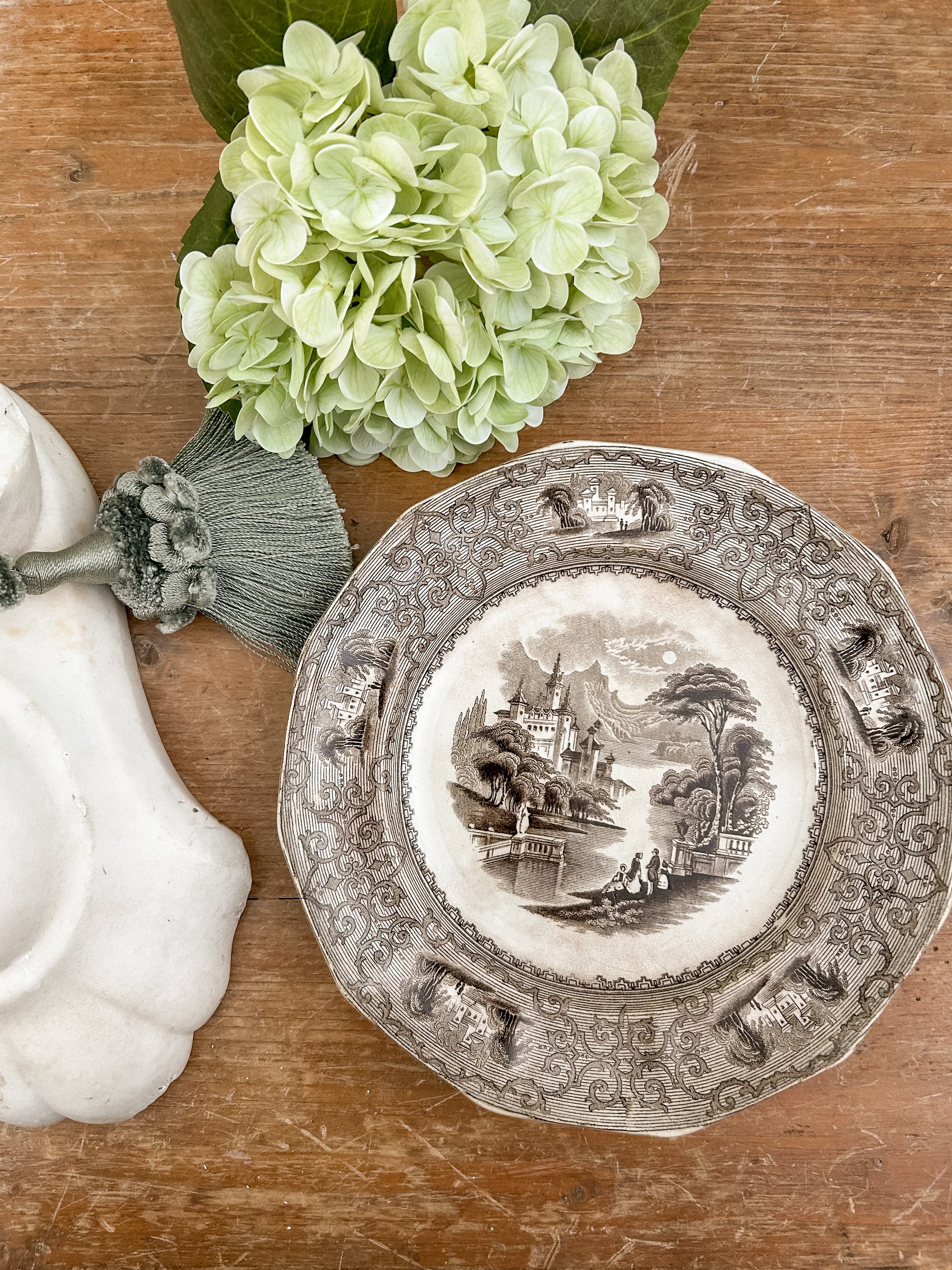 Antique English Transferware Plate – “Monterey” by J. Heath