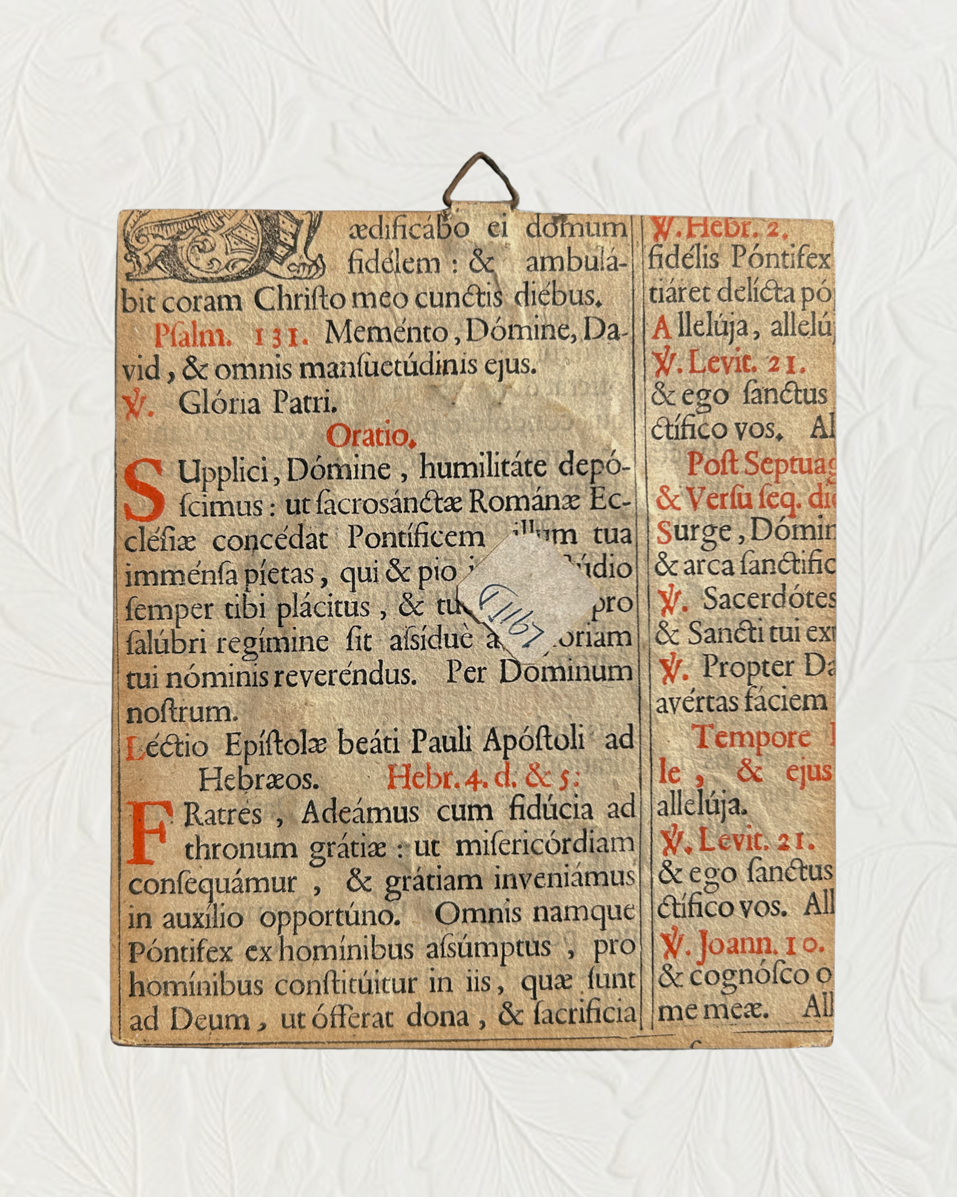 The portrait is set under glass within a lustrous birdseye maple frame, prized for its distinctive grain pattern and golden hue. The oval inner mount features gilt floral trim, while the reverse is lined with an antique Latin devotional text.