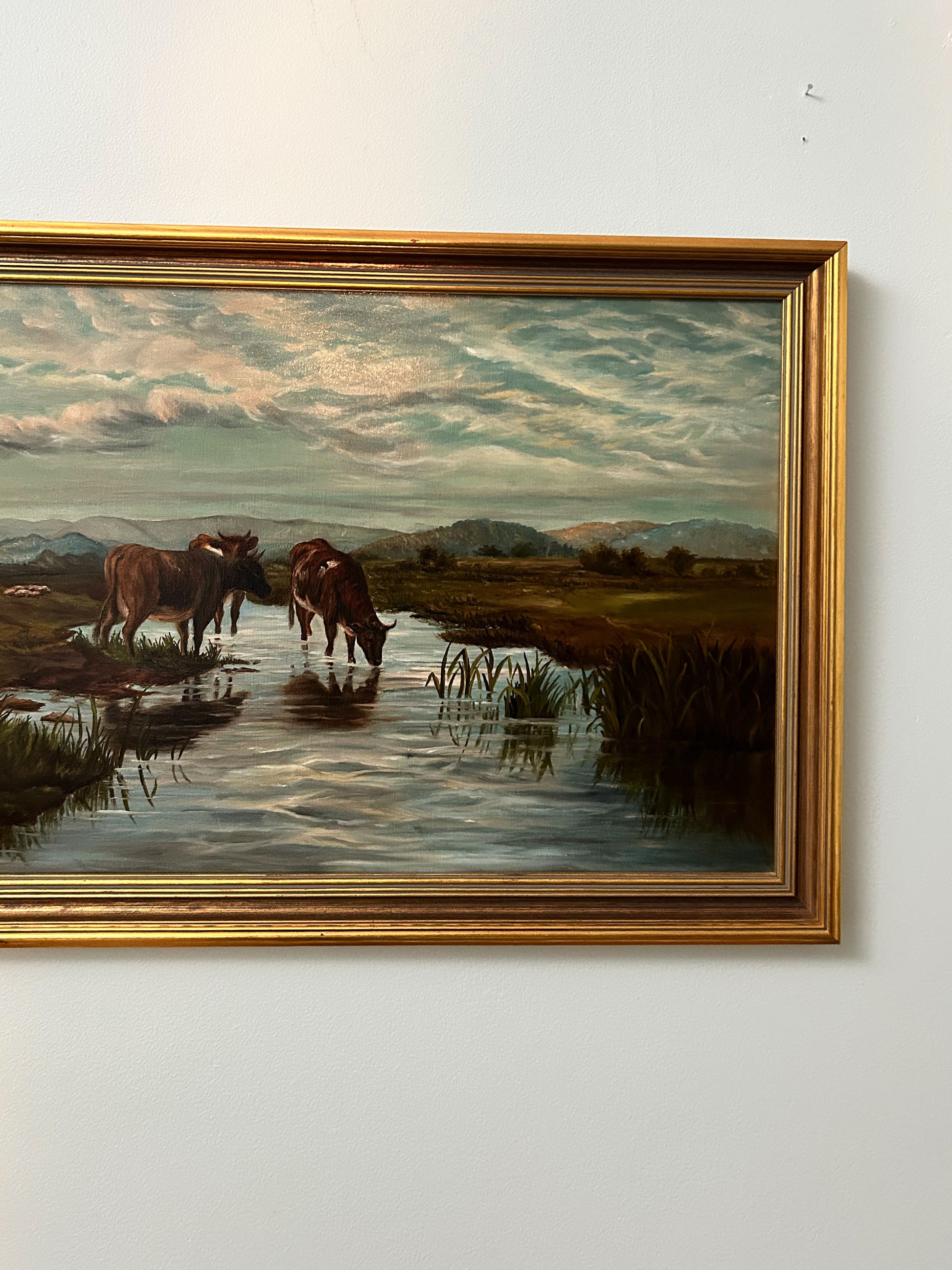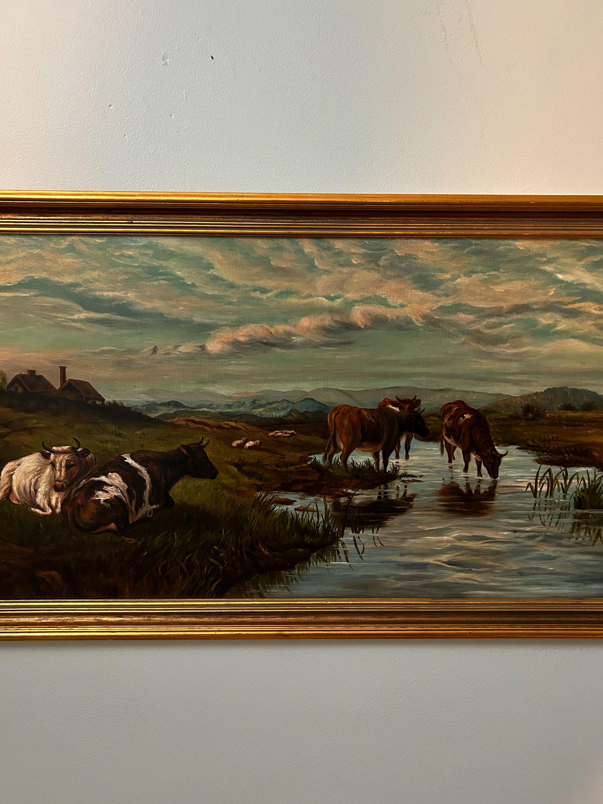 Antique Pastoral with Cows Oil on Board