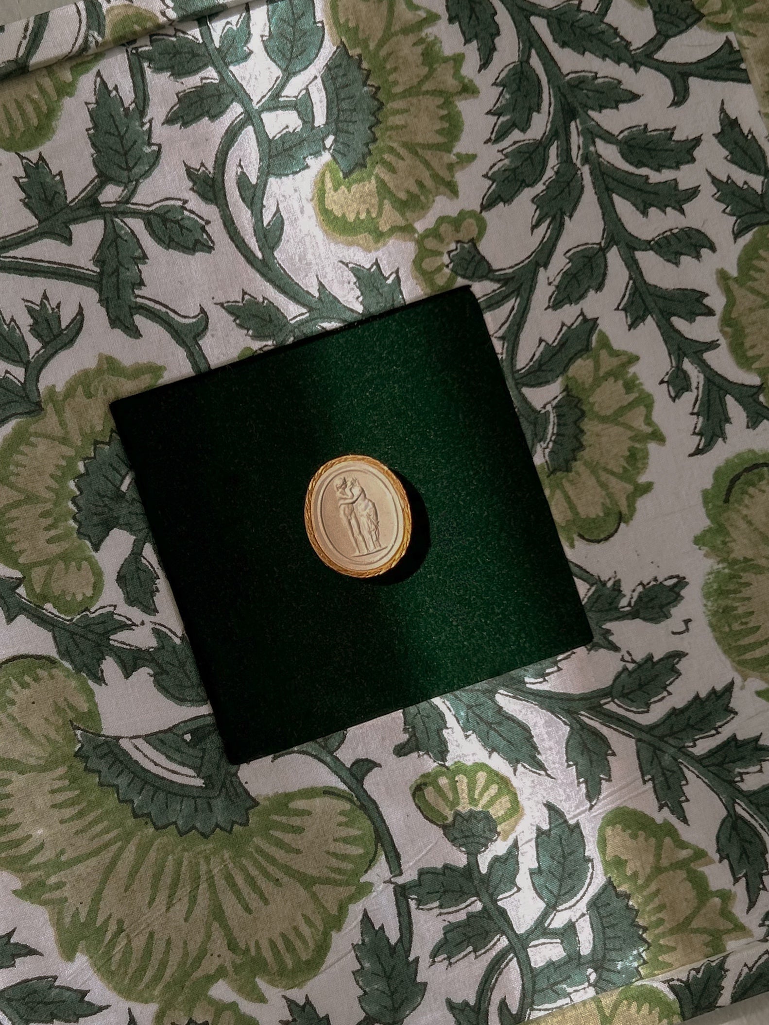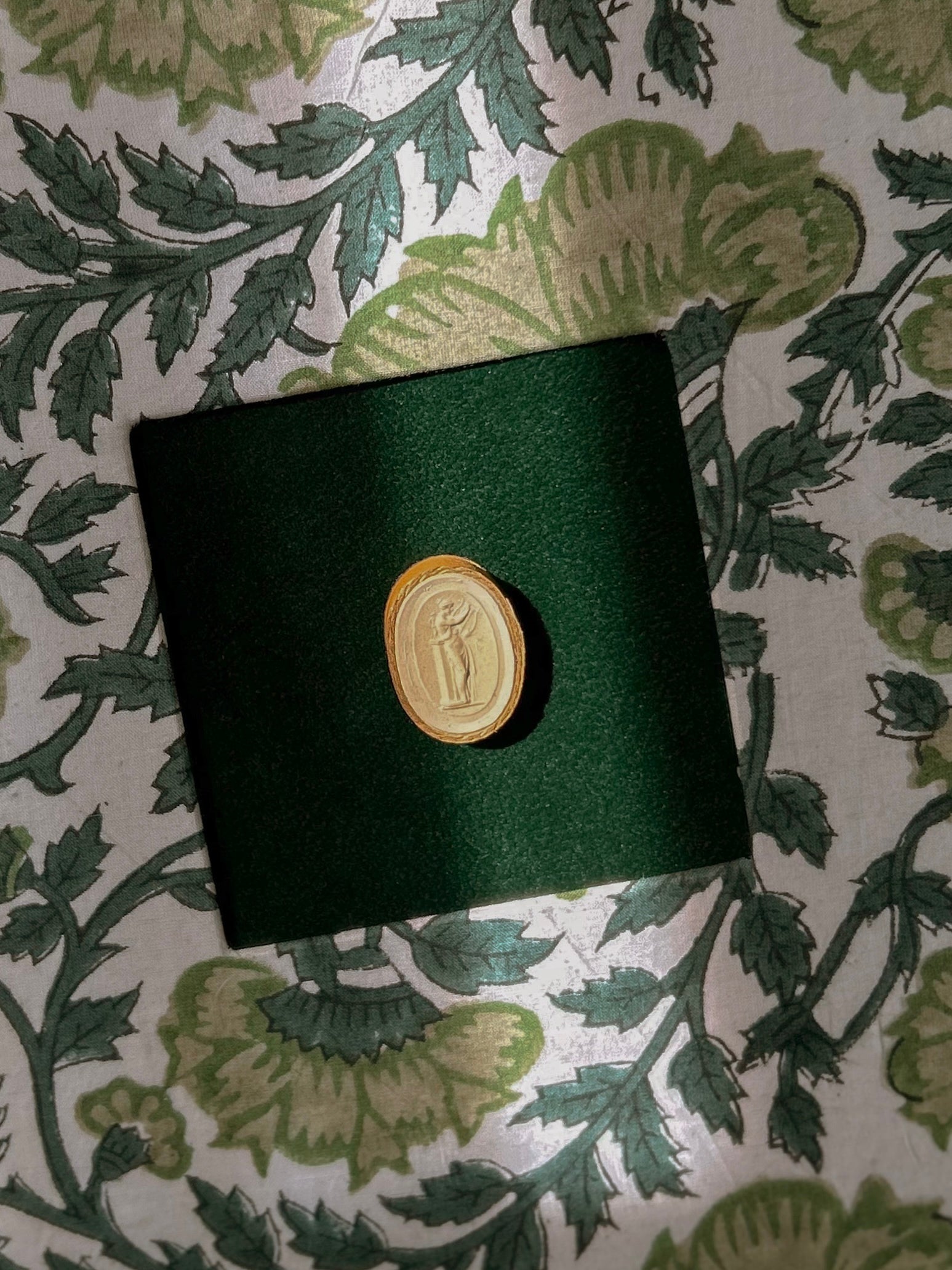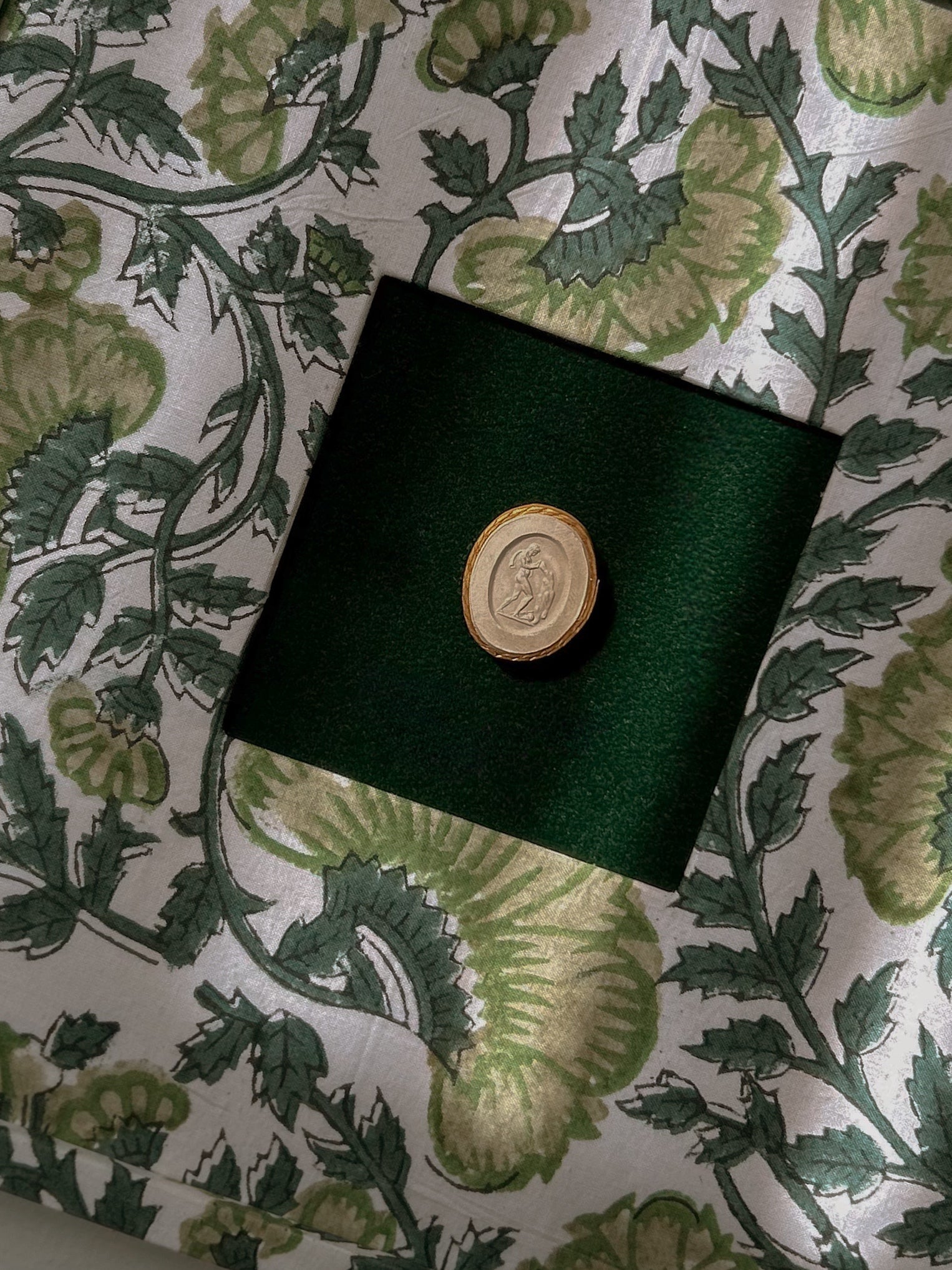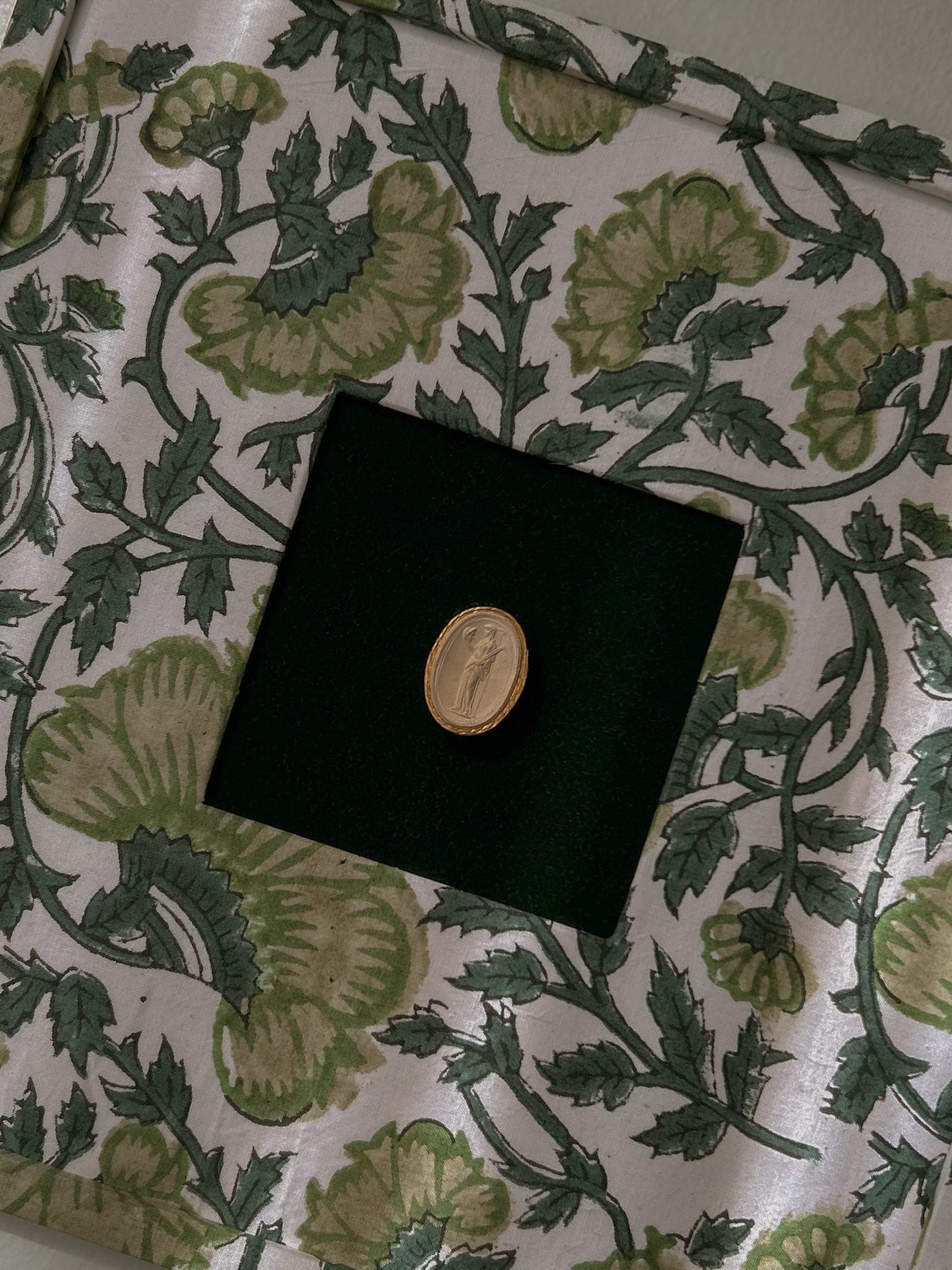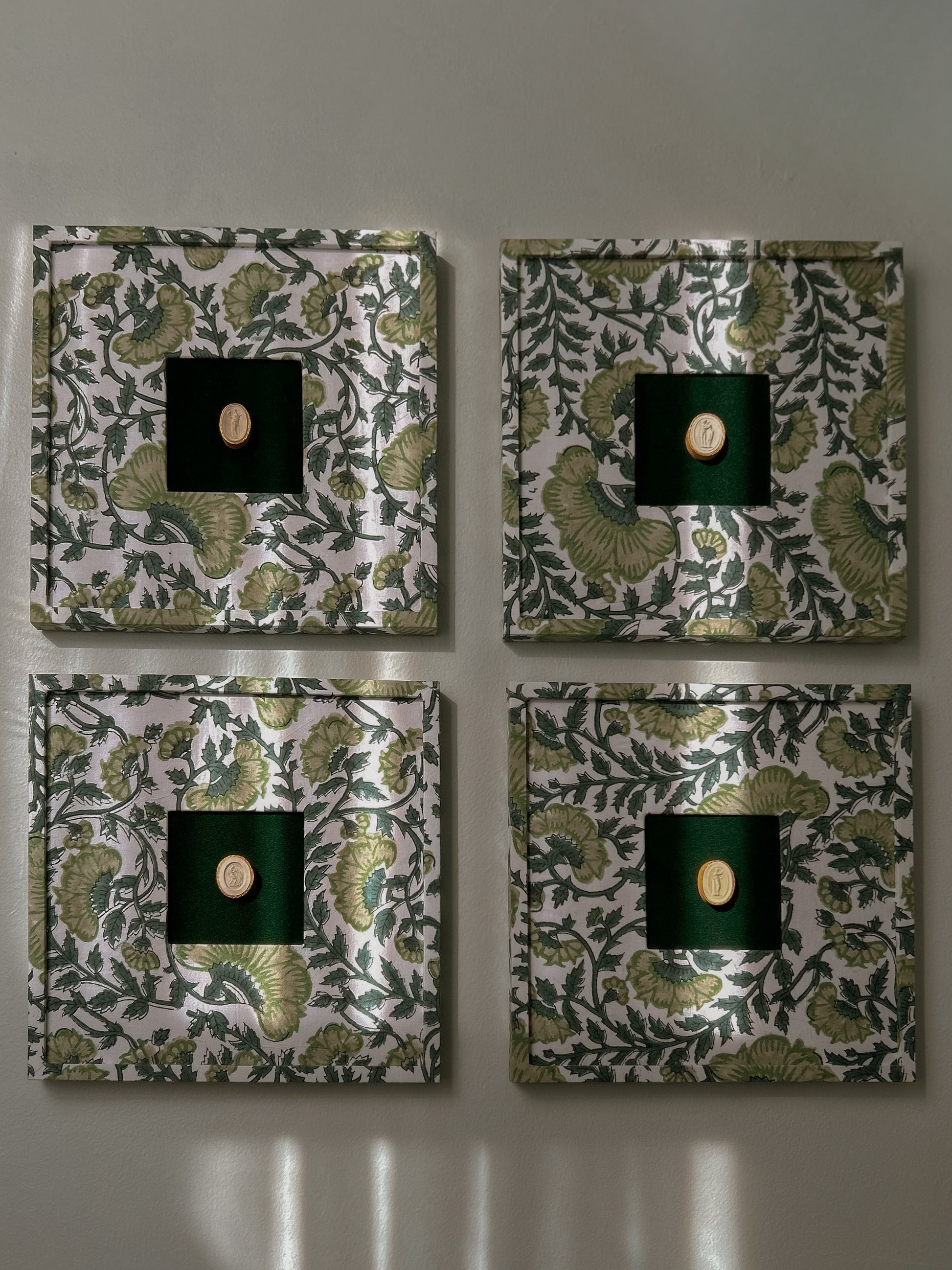 Set of Four Antique Grand Tour Intaglios on Bespoke Framed Botanical Fabric